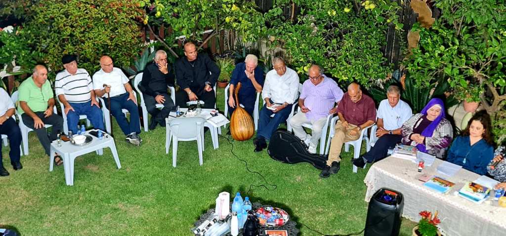 كان هذا المشهد في حديقة منزل الزّميل الشّاعر ناظم حسون في شفاعمرو، بلد التآخي والثقافة.