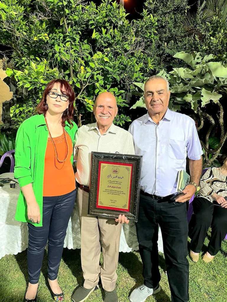أقام منتدى “عكاظ” مساء اليوم الأربعاء ، في حديقة منزل الزميل الشاعر ناظم حسون في شفاعمرو، أمسية تكريمية لعضو المنتدى الشاعر جورج جريس فرح، تقديرًا لمسيرته الإبداعية الطويلة والرّاقية منذ أوائل الستينات من القرن الماضي.