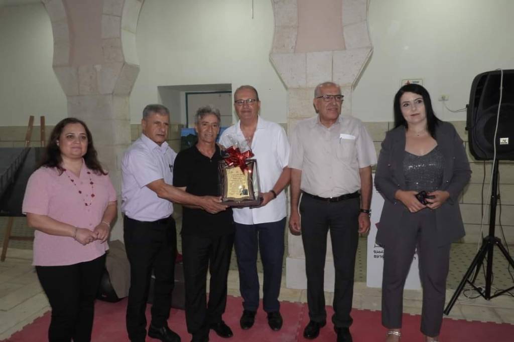 وكان مسك الختام فقرة التكريم، فقدّم مدير المركز الجماهيري الاستاذ زايد خنيفس والاستاذ فرج خنيفس درعا تكريمية للمحتفى به.