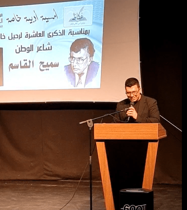ألقى نجل الفقيد السيّد وطن القاسم، كلمة ختاميّة في الأمسية الأدبية لإحياء الذكرى العاشرة لرحيل شاعر العروبة والوطن سميح القاسم، التي أقيمت في قاعة مسرح الأفق في شفاعمرو.