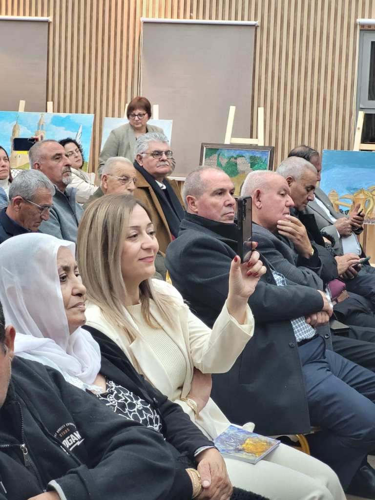 افتتحت العريقة اللقاء ودعت الفنان جميل عمرية ليتحدّث عن لوحاته وأعماله الفنّية،